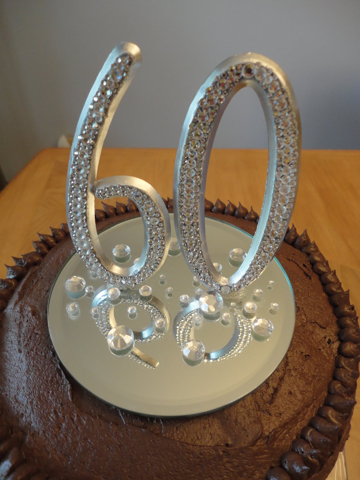 I knew I wanted to make a layer cake because I was planning on using my Grandma's glass cake pedestal and the rhinestone "60" cake topper that I had made 5 years ago for my Grandparent's 60th Wedding Anniversary cake. So I did a search on Pinterest for layer cakes and I found this 14 layer cake! There are many variations of the recipe, and for ease I choose to do the one that uses a box cake mix. Although you add a different ratio of things to it rather than follow the box, as well as the addition of pudding mix.