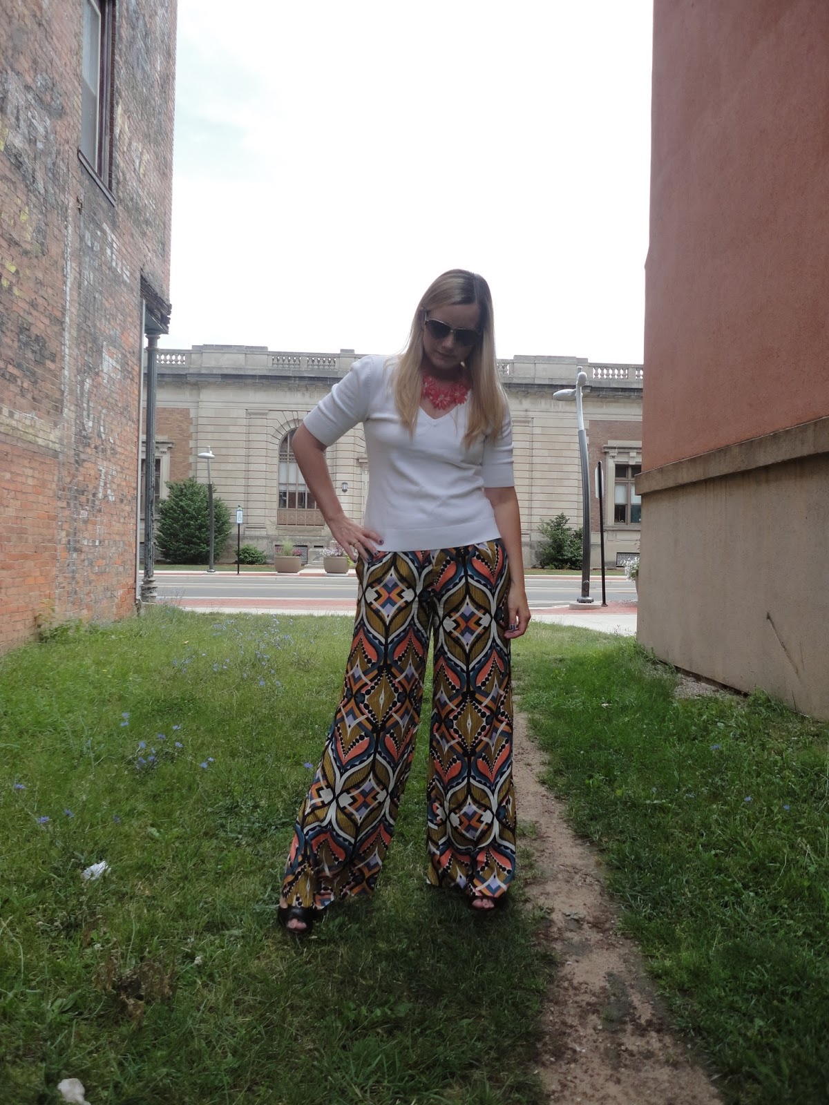 I know I've posted before about loving palazzo pants. Also know as wide legs, or even pajama pants. So I don't want to sound like a broken record. I have really loved adding this style of pant to my closet within the last year or so. The more unique the print, the more I am drawn to it.